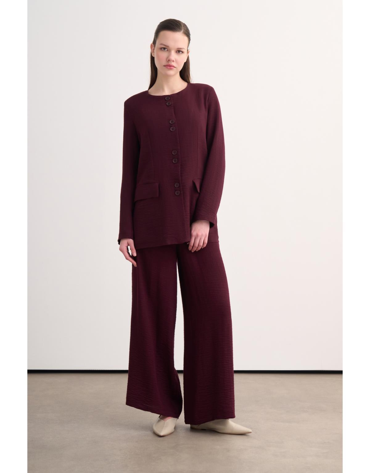 Keten kumaşın doğal dokusuyla tasarlanan bu ceket pantolon takım, net ve dengeli bir siluet sunar. Hafif yapısı sayesinde gün boyu konfor sağlarken, sade çizgisiyle güçlü bir görünüm oluşturur.